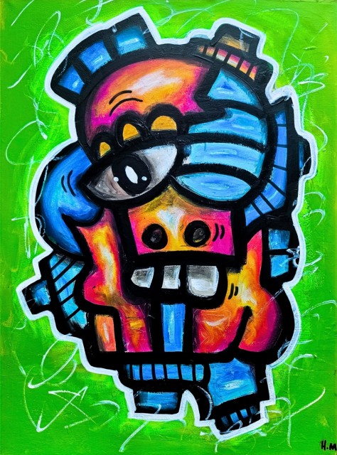 Fargerikt maleri på lerret.