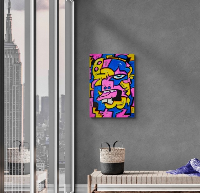 Nøkkelord: Kunst på lerret, maleri på lerret, kjøp kunst på nett, kunst til salgs online, stort maleri til stue, maleri til stuen, maleri til stueveggen, kunst til stue, kunst til stuen, kunst til stua, fargerik kunst, fargesterk kunst, fargerikt maleri, norsk kunst, norsk kunstner, Håkon Morønning, Art By Hakon, lerretsbilde, akrylmaleri, original kunst, originalt maleri, morsom figur kunst lerret bilde maleri, moderne kunst, moderne maleri, stilig kunst, kul kunst, dekorativ kunst, blå, rosa, gul, lilla, popkunst, pop art maleri, surrealistisk maleri, surrealisme kunst, ekspresjonisme, kubisme, populær kunst, kunst 2025.