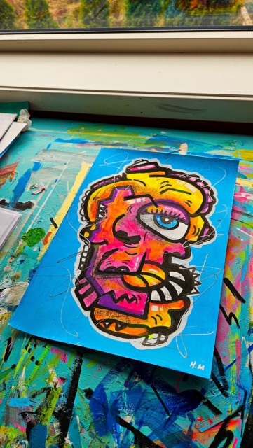 Originalt verk av Håkon Morønning, “Color Me Human”, malt med akryl på papir.