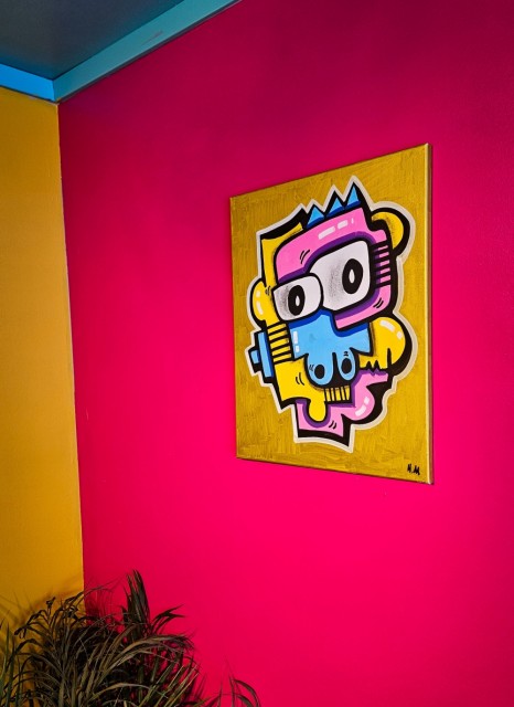Fargerikt maleri på lerret.