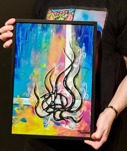 Originalt maleri i forbindelse med kunst samarbeid TRUKON: A3 maleri på papir, laget av Håkon