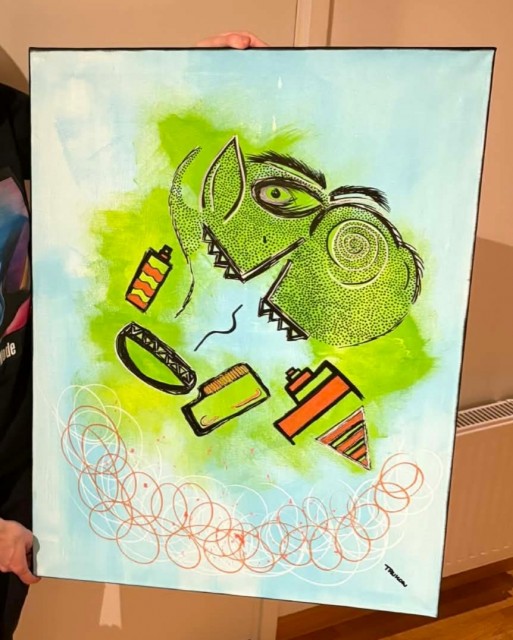 Originalt maleri i forbindelse med kunst samarbeid TRUKON: "Før jeg går ut" laget av Trude