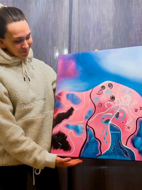Originalt maleri i forbindelse med kunst samarbeid TRUKON: "Hans maske, min hånd" laget av Trude