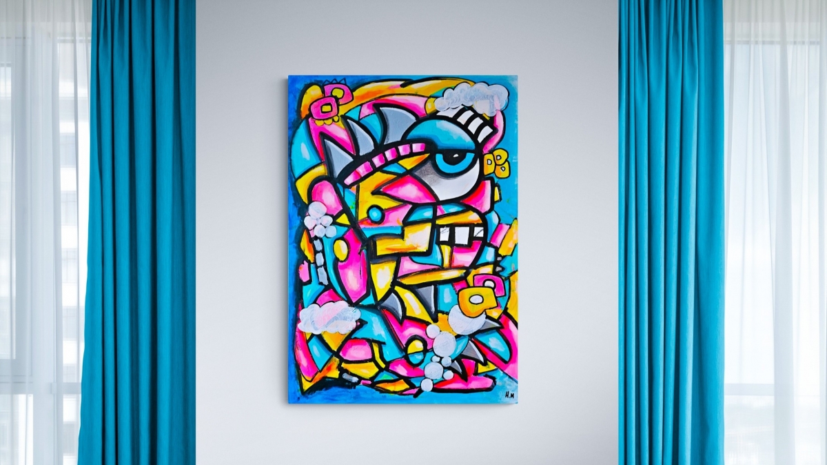 Stort maleri til stue - Kunst til salgs - Originalt kunstverk - Popkunst i akryl - Pop art maleri - Street art kunst
