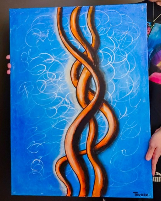 Originalt maleri i forbindelse med kunst samarbeid TRUKON: "Der årene møtes" laget av Håkon