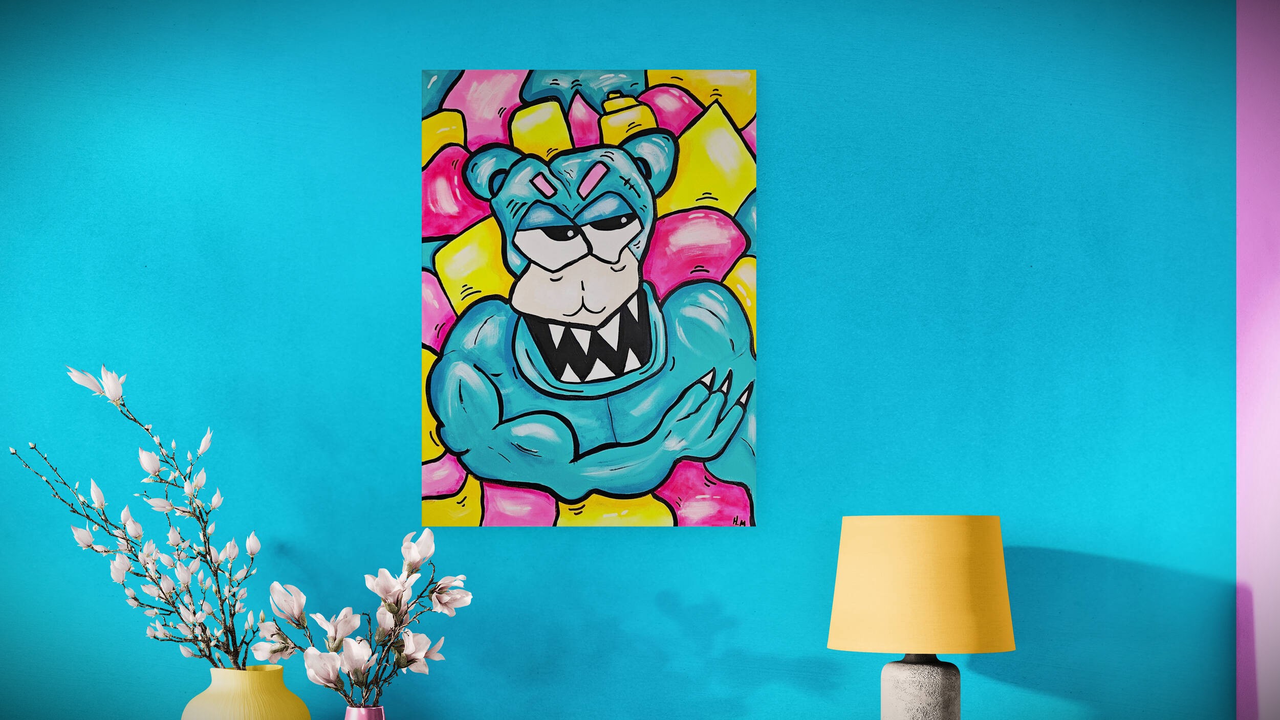Resultatet er fargesterke malerier med et urbant og energisk uttrykk – ofte med et hint av humor, mystikk eller menneskelig sårbarhet.